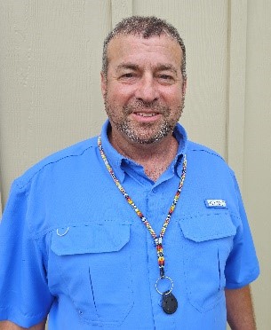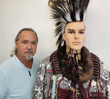 Stephen Potts “I’m a member of the Poarch Creek Pow Wow Club, and my regalia is a style for Men’s Southern Straight, a warriors’ dance that originated in Oklahoma. I began dancing in 2018 after attending Pow Wow practice as an observer. I fell in love with the sound of the drums and beauty of the dances. I was a teacher in Georgia for 23 years before returning to Alabama to work for the Poarch.”