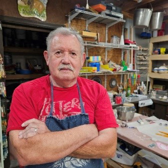 Ray Patrick “I retired from nursing after 40 years and took up pottering seven years ago. I enjoy doing pottery because every item you make is different from the one before, and there are endless possibilities. My type of pottery is hand building, and stoneware clay is my medium. I prefer stoneware because you can use it for cooking. Just about everything you can do on a wheel, you can do by hand. I have an idea in my head of what I want to do, and I get my clay and materials and just start putting it together.”