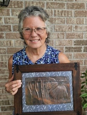 Kathy Ward “My interest in art began with painting and has expanded to other forms. When the tribe began offering different craft classes, I learned copper tooling, shell carving, basket weaving and leather work. Copper tooling is my favorite. I am Poarch Creek Indian, and my art shows my love of my heritage, so I’m carrying the legacy of my ancestors to make them proud of who I am and where I came from.”